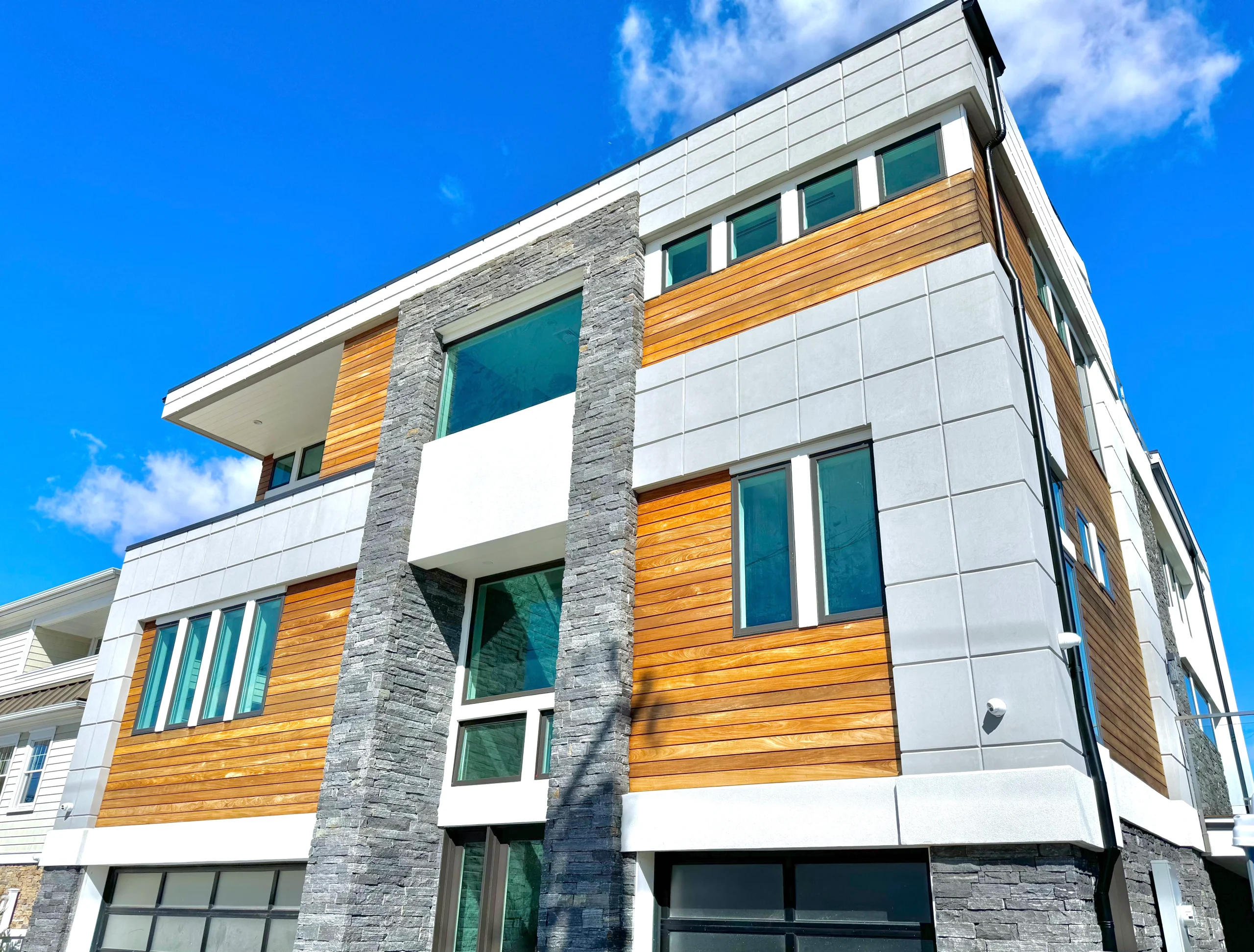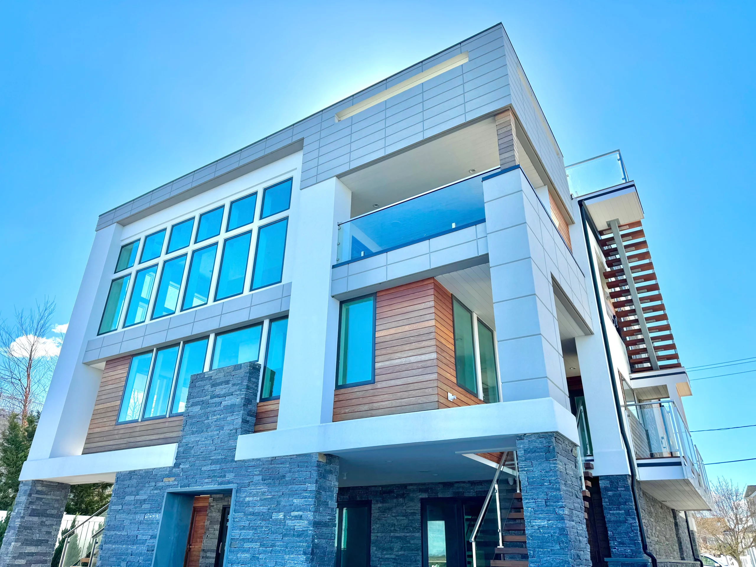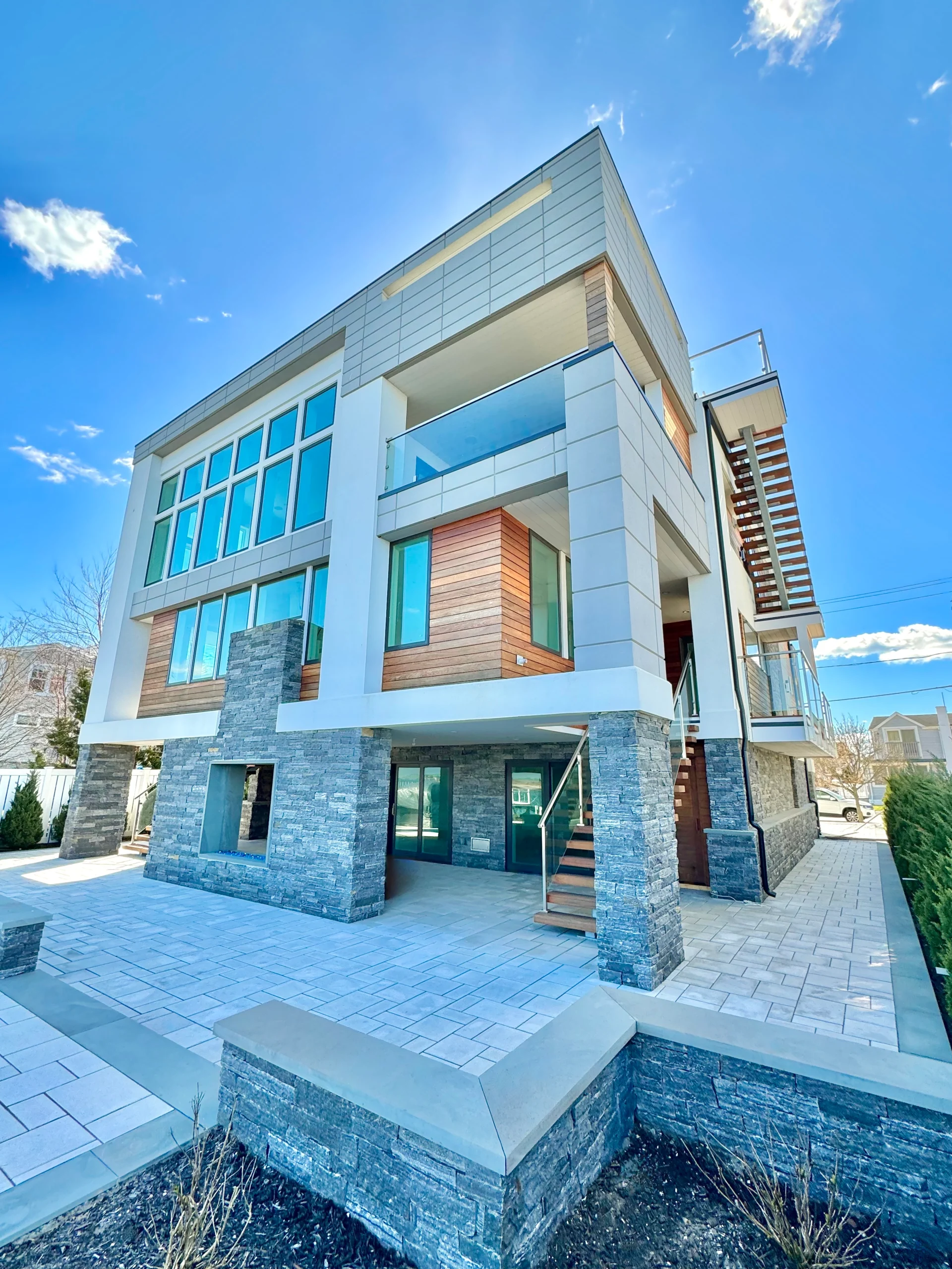 This project in Lido Beach showcases our commitment to precision, blending innovative design with functional elegance. Using a digital rendering to guide the vision, we created a home that seamlessly integrates with its environment while offering durability and energy efficiency. Highlights include Ipe wood rainscreen for longevity, advanced EIFS for thermal efficiency, and Brick-It Pangaea stone veneer for natural harmony. This project reflects our dedication to exceeding the highest standards in architectural design and renovation.